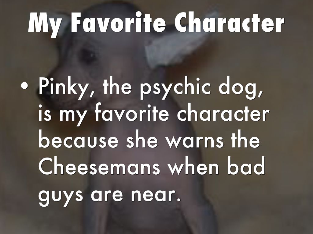 - Pinky, the psychic dog, is my favorite character because she warns the Cheesemans when bad guys are near.
