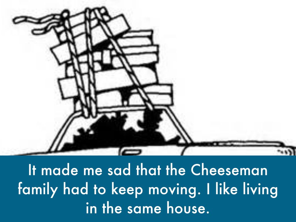It made me sad that the Cheeseman family had to keep moving. I like living in the same house.
