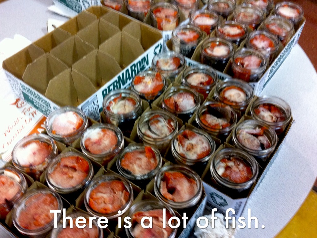 When you are canning fish you cut the fins off first except you leave the tail.