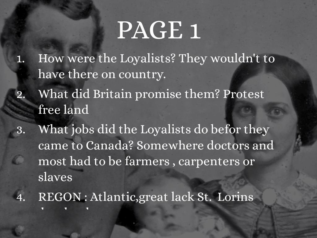 The Loyalists ended up split into two groups and one group settled in Sierra Leone, a British colony in Africa. The other group settled in Nova Scotia