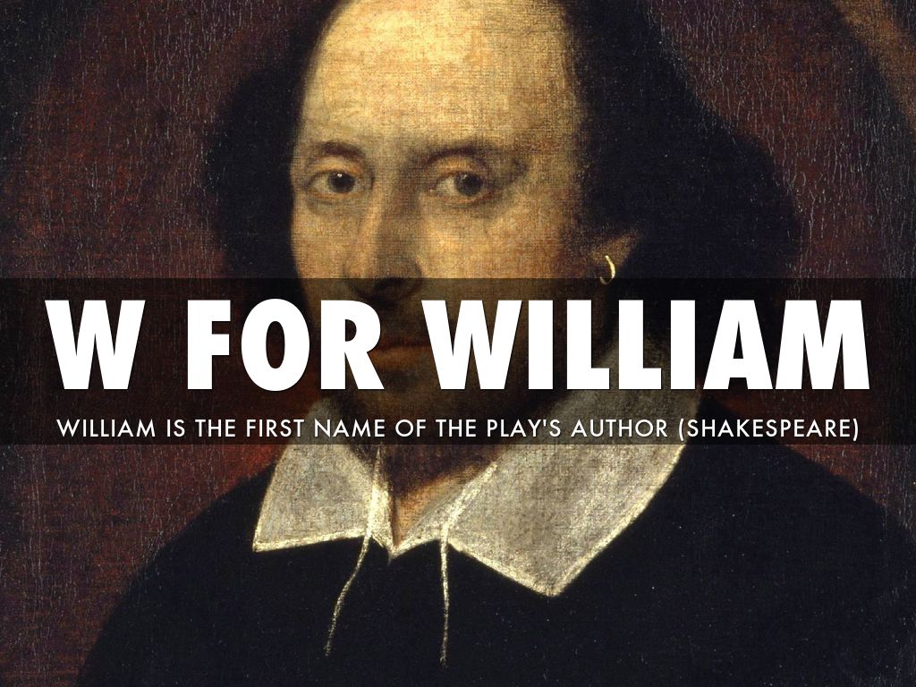 WILLIAM IS THE FIRST NAME OF THE PLAY'S AUTHOR (SHAKESPEARE)