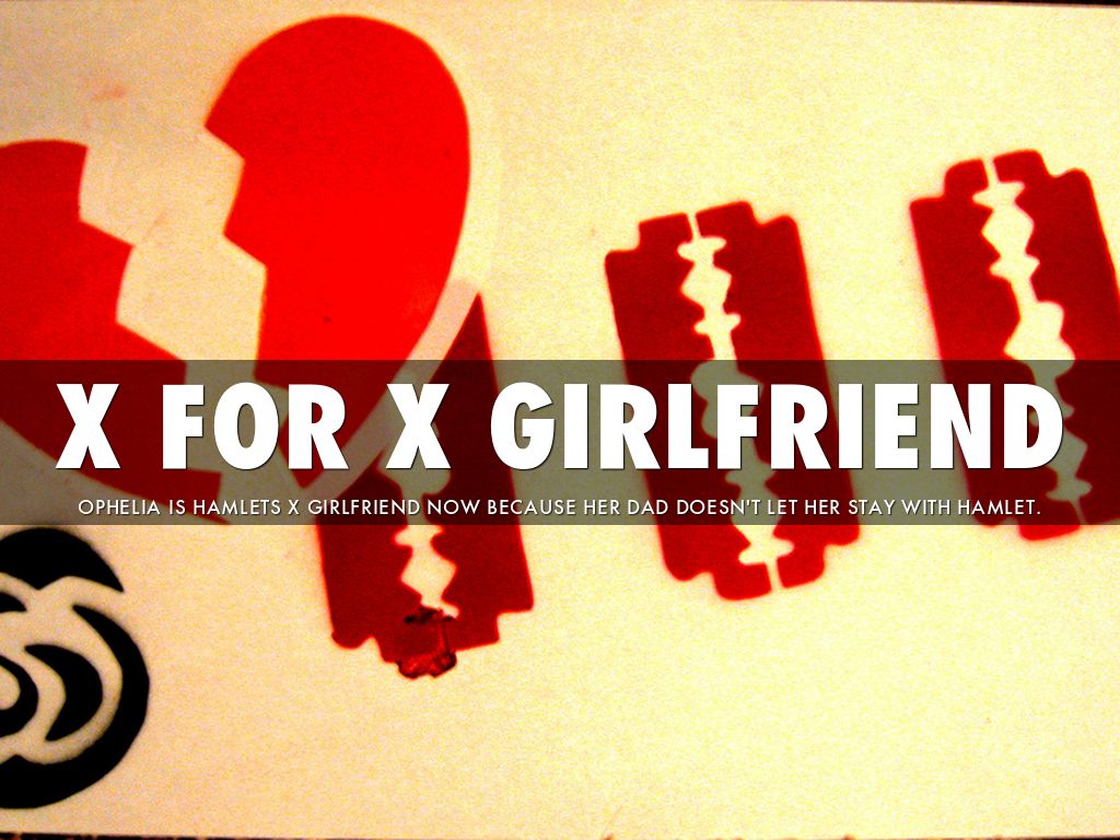 OPHELIA IS HAMLETS X GIRLFRIEND NOW BECAUSE HER DAD DOESN'T LET HER STAY WITH HAMLET.