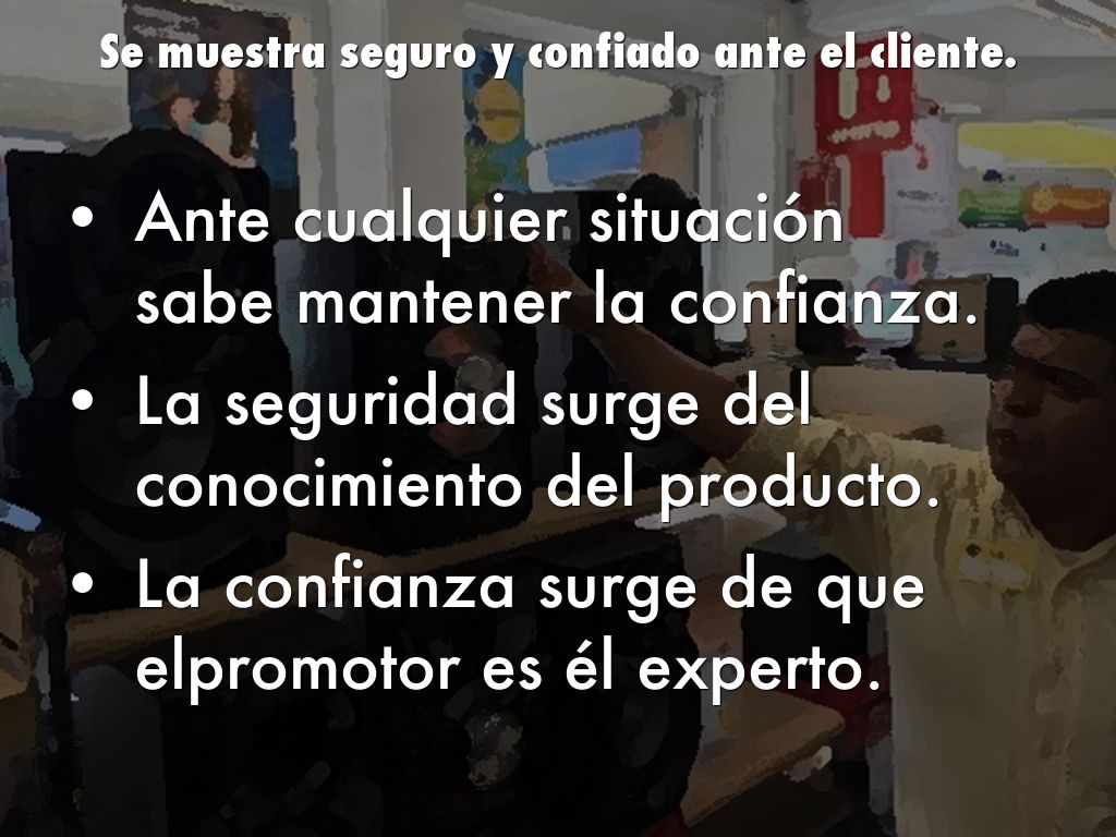 Se muestra seguro y confiado ante el cliente.