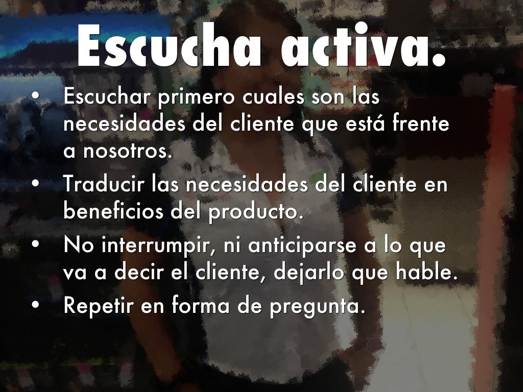 • Escuchar primero cuales son las necesidades del cliente que está frente a nosotros.