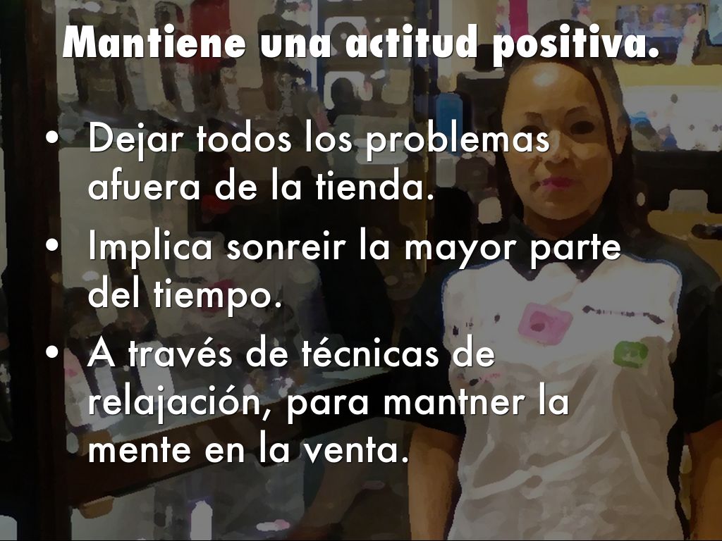 • A través de técnicas de relajación, para mantner la mente en la venta.