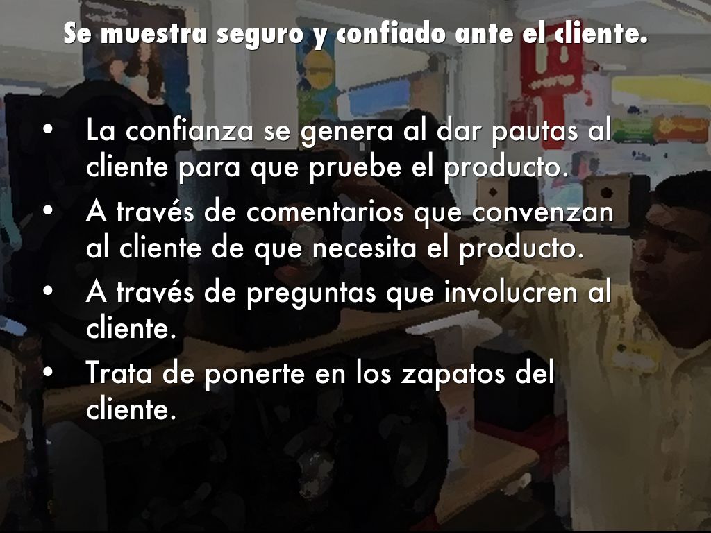 • La confianza se genera al dar pautas al cliente para que pruebe el producto.