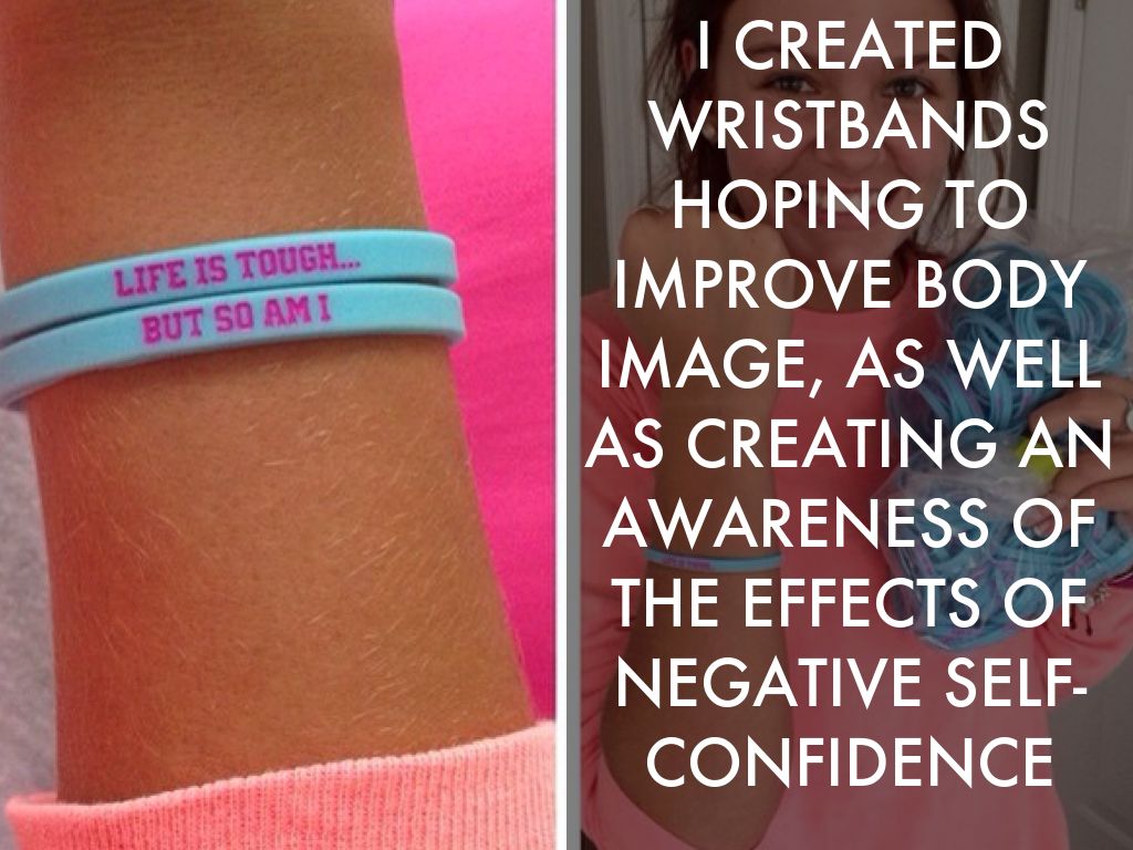 I CREATED WRISTBANDS HOPING TO IMPROVE BODY IMAGE, AS WELL AS CREATING AN AWARENESS OF THE EFFECTS OF NEGATIVE SELF-CONFIDENCE