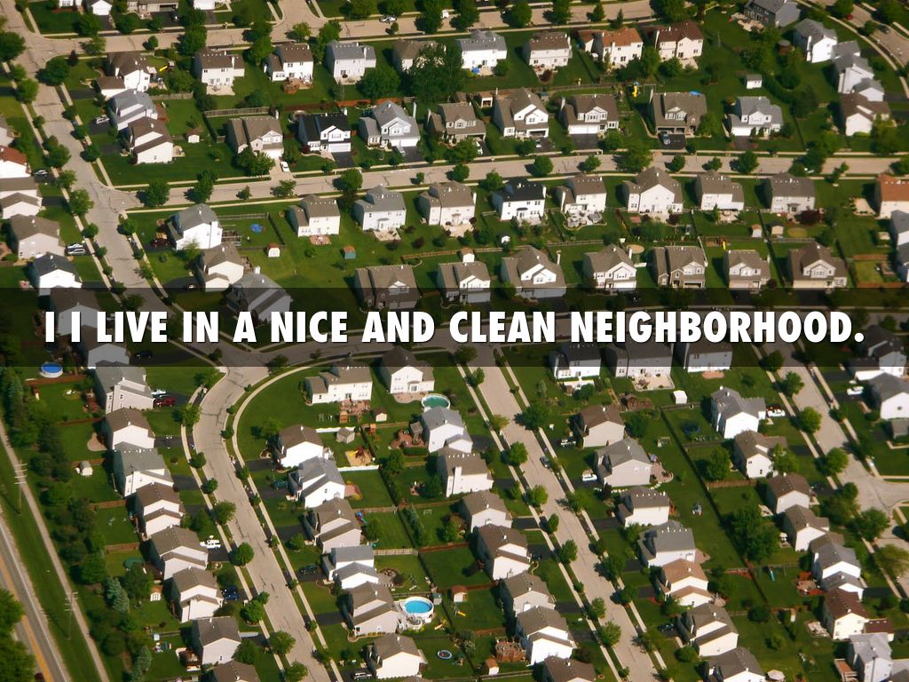 I I LIVE IN A NICE AND CLEAN NEIGHBORHOOD.