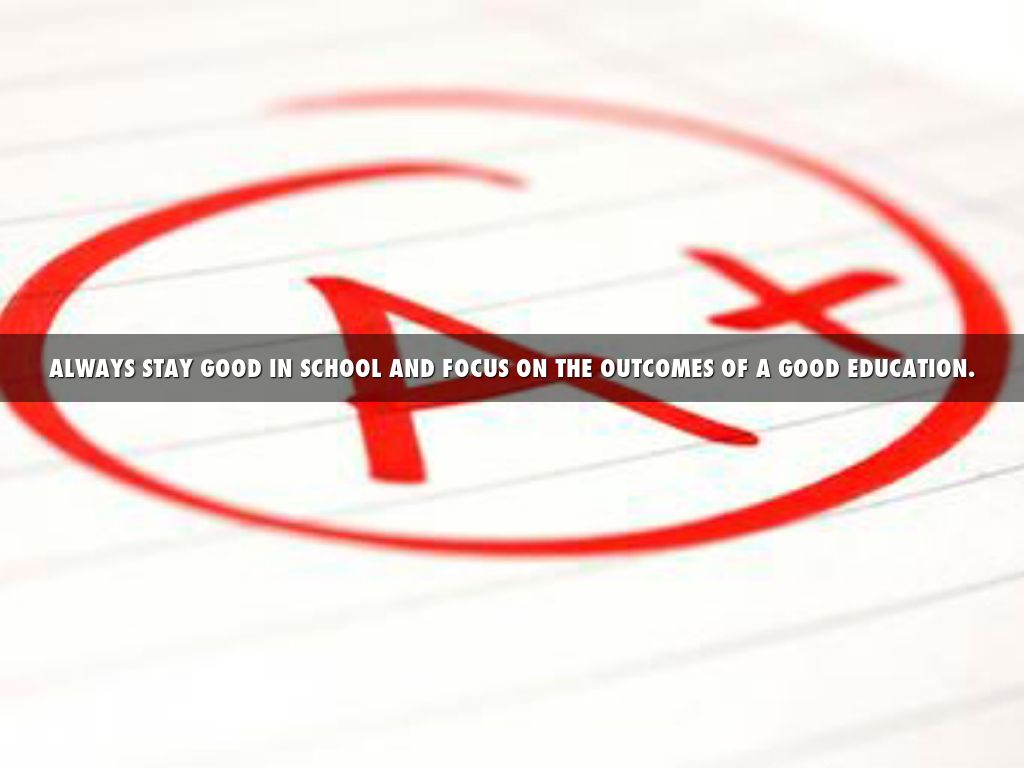 ALWAYS STAY GOOD IN SCHOOL AND FOCUS ON THE OUTCOMES OF A GOOD EDUCATION.