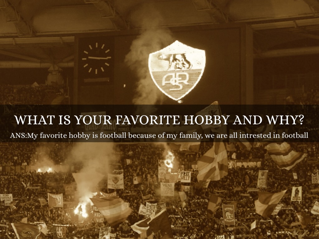 ANS:My favorite hobby is football because of my family, we are all intrested in football