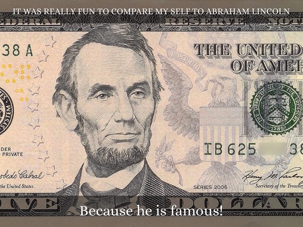 IT WAS REALLY FUN TO COMPARE MY SELF TO ABRAHAM LINCOLN