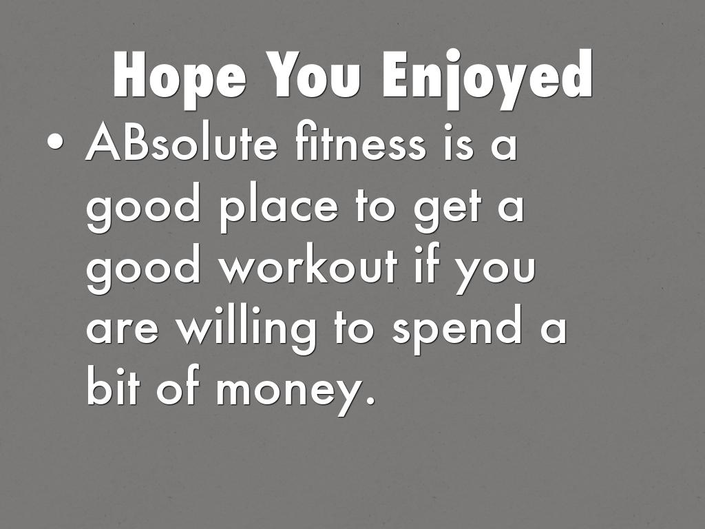 ABsolute fitness is a good place to get a good workout if you are willing to spend a bit of money.