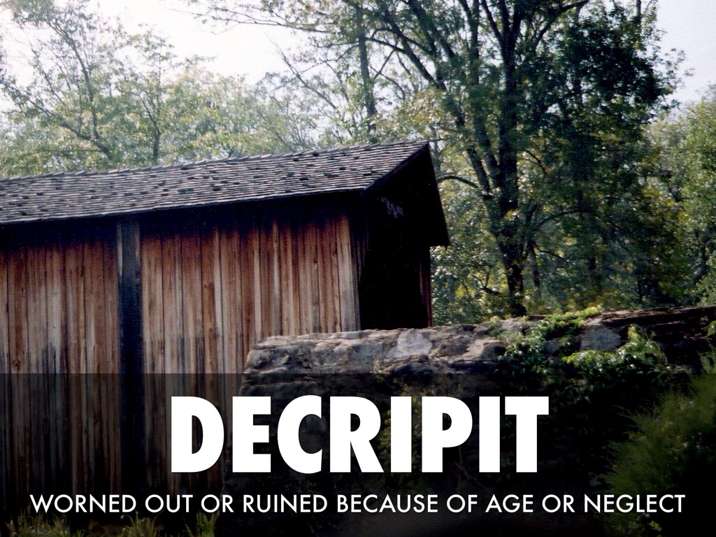WORNED OUT OR RUINED BECAUSE OF AGE OR NEGLECT