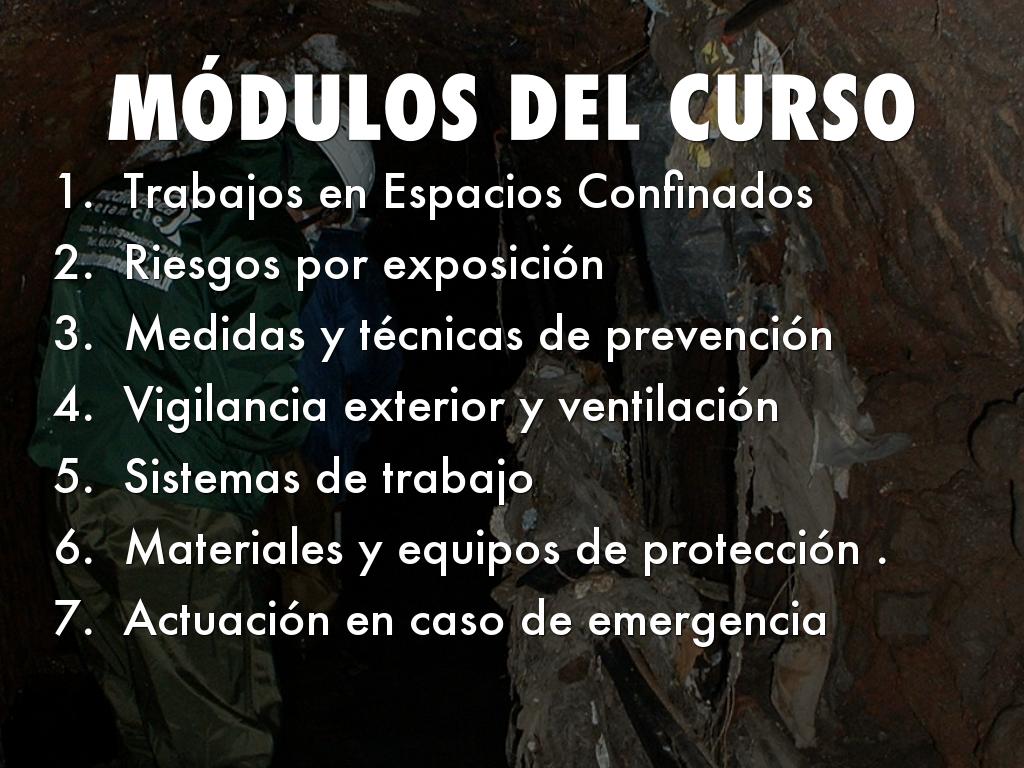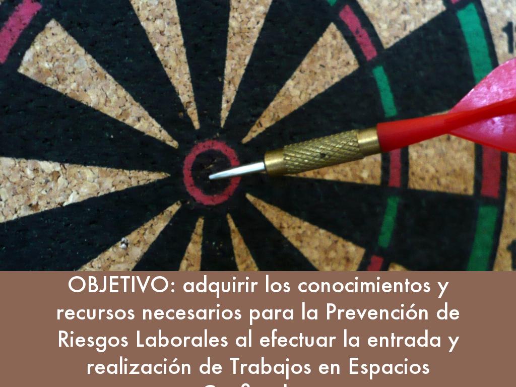 OBJETIVO: adquirir los conocimientos y recursos necesarios para la Prevención de Riesgos Laborales al efectuar la entrada y realización de Trabajos en Espacios Confinados.