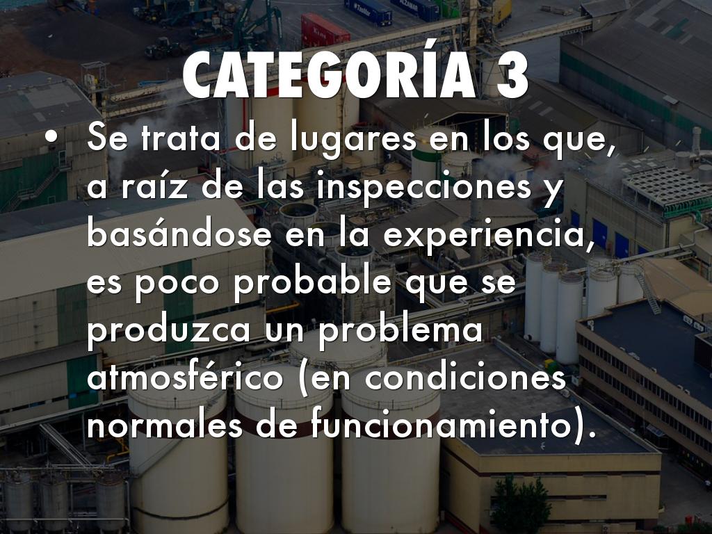 Se trata de lugares en los que, a raíz de las inspecciones y basándose en la experiencia, es poco probable que se produzca un problema atmosférico (en condiciones normales de funcionamiento).