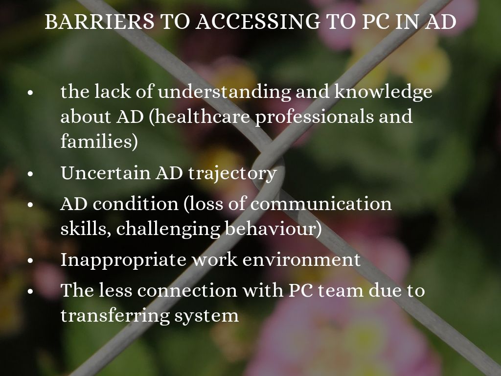 - Connection between PC team and dementia care team-trainings, meetings, regular visits