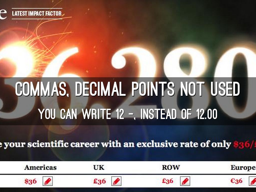 commas, decimal points not used
