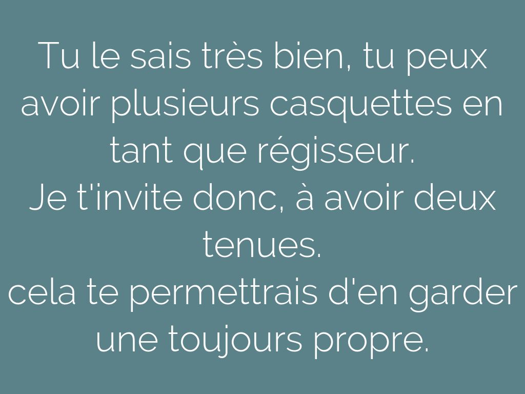Tu le sais très bien, tu peux avoir plusieurs casquettes en tant que régisseur.