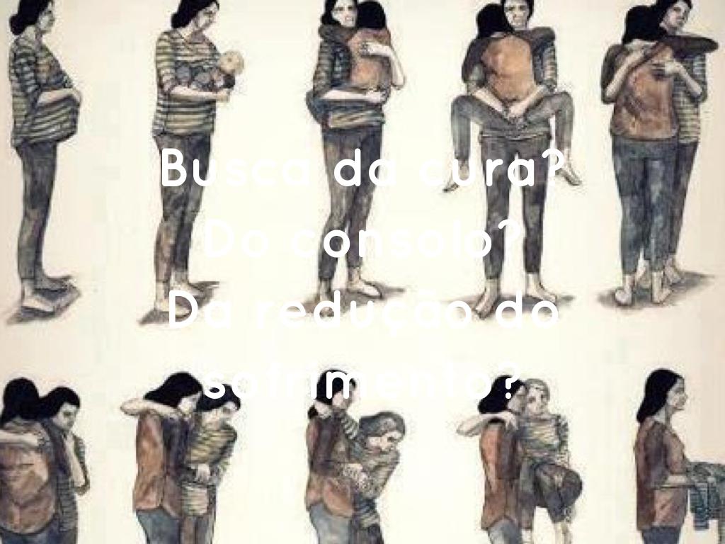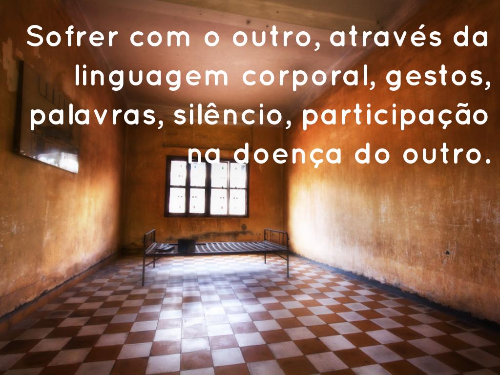 Sofrer com o outro, atravĂ©s da linguagem corporal, gestos, palavras, silĂȘncio, participação na doença do outro.