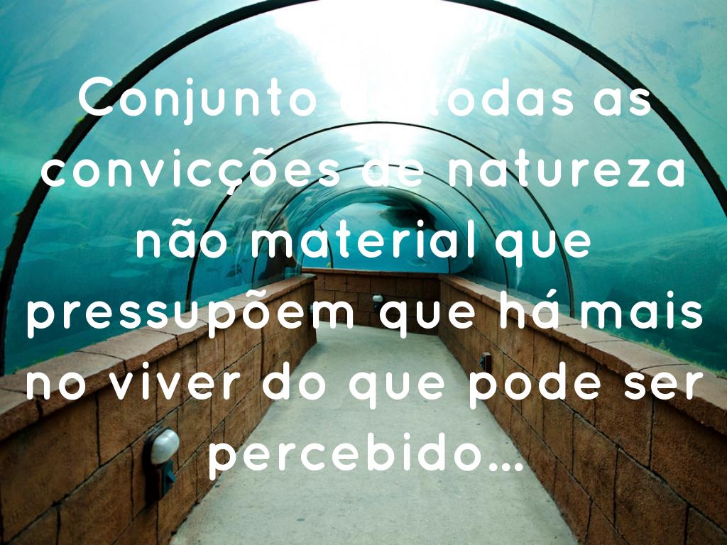 Conjunto de todas as convicçÔes de natureza não material que pressupÔem que hå mais no viver do que pode ser percebido...