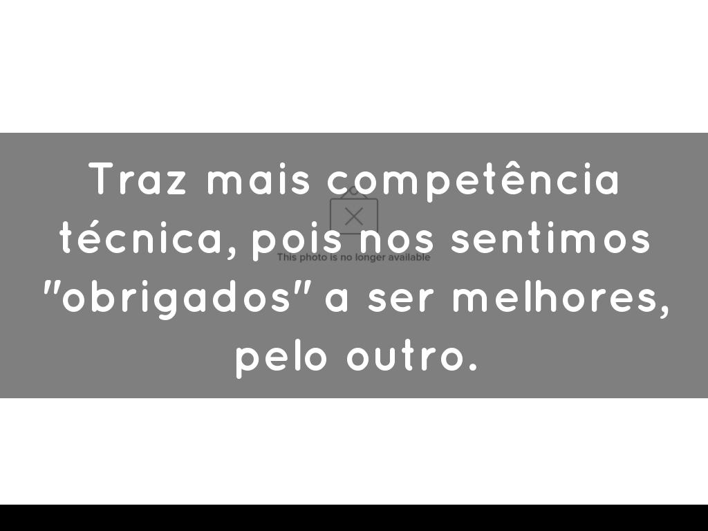 Traz mais competĂȘncia tĂ©cnica, pois nos sentimos "obrigados" a ser melhores, pelo outro.