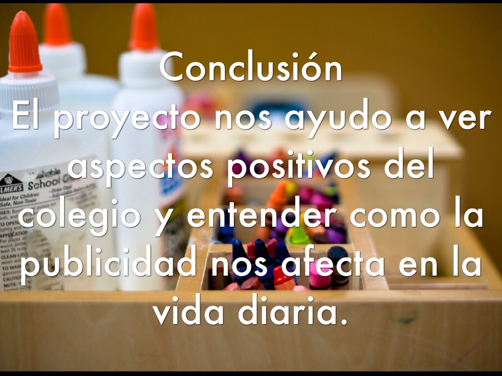 El proyecto nos ayudo a ver aspectos positivos del colegio y entender como la publicidad nos afecta en la vida diaria.