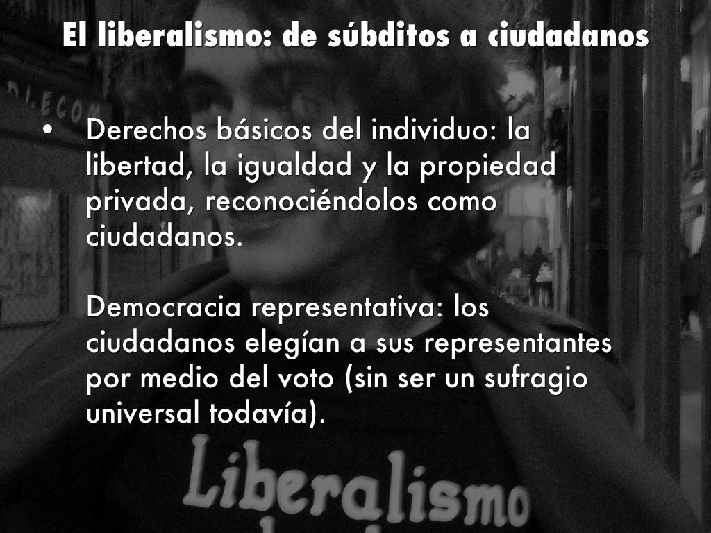 Democracia representativa: los ciudadanos elegían a sus representantes por medio del voto (sin ser un sufragio universal todavía).