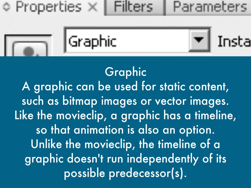 Like the movieclip, a graphic has a timeline, so that animation is also an option.