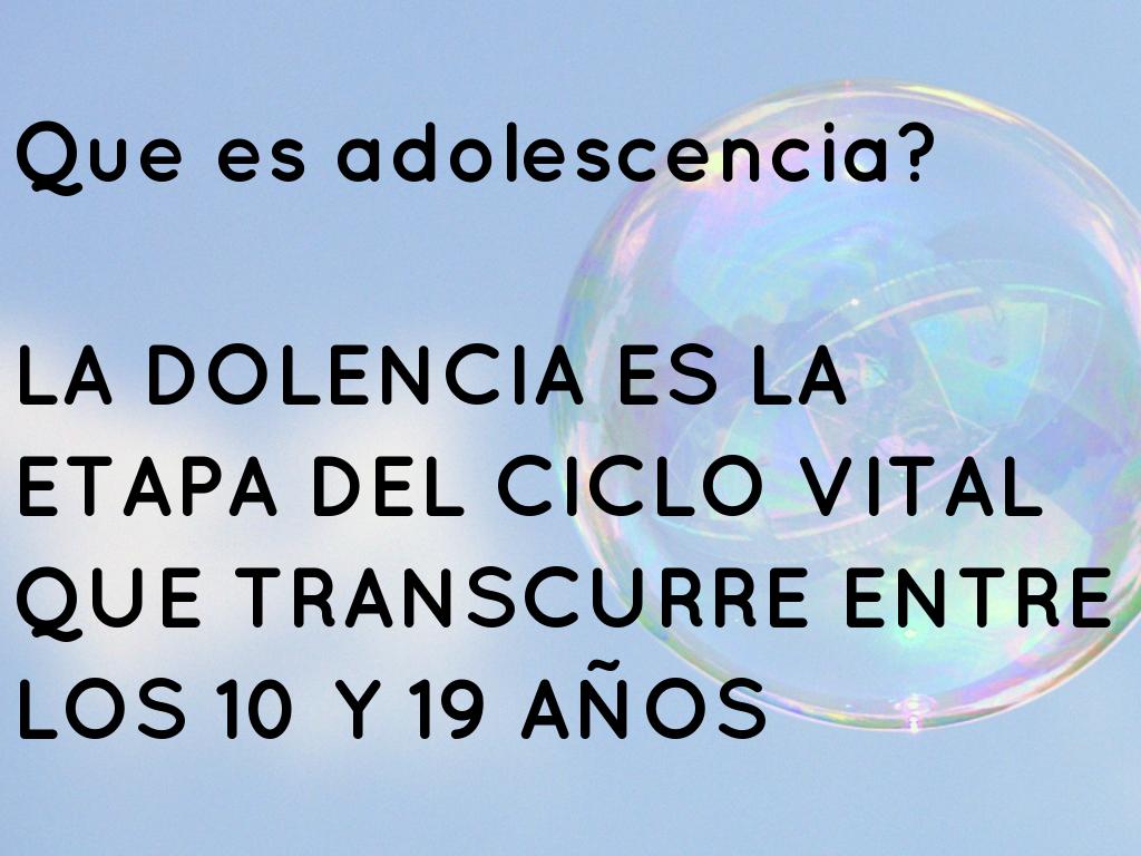 LA DOLENCIA ES LA ETAPA DEL CICLO VITAL QUE TRANSCURRE ENTRE LOS 10 Y 19 AÑOS