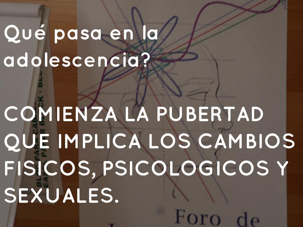 COMIENZA LA PUBERTAD QUE IMPLICA LOS CAMBIOS FISICOS, PSICOLOGICOS Y SEXUALES.