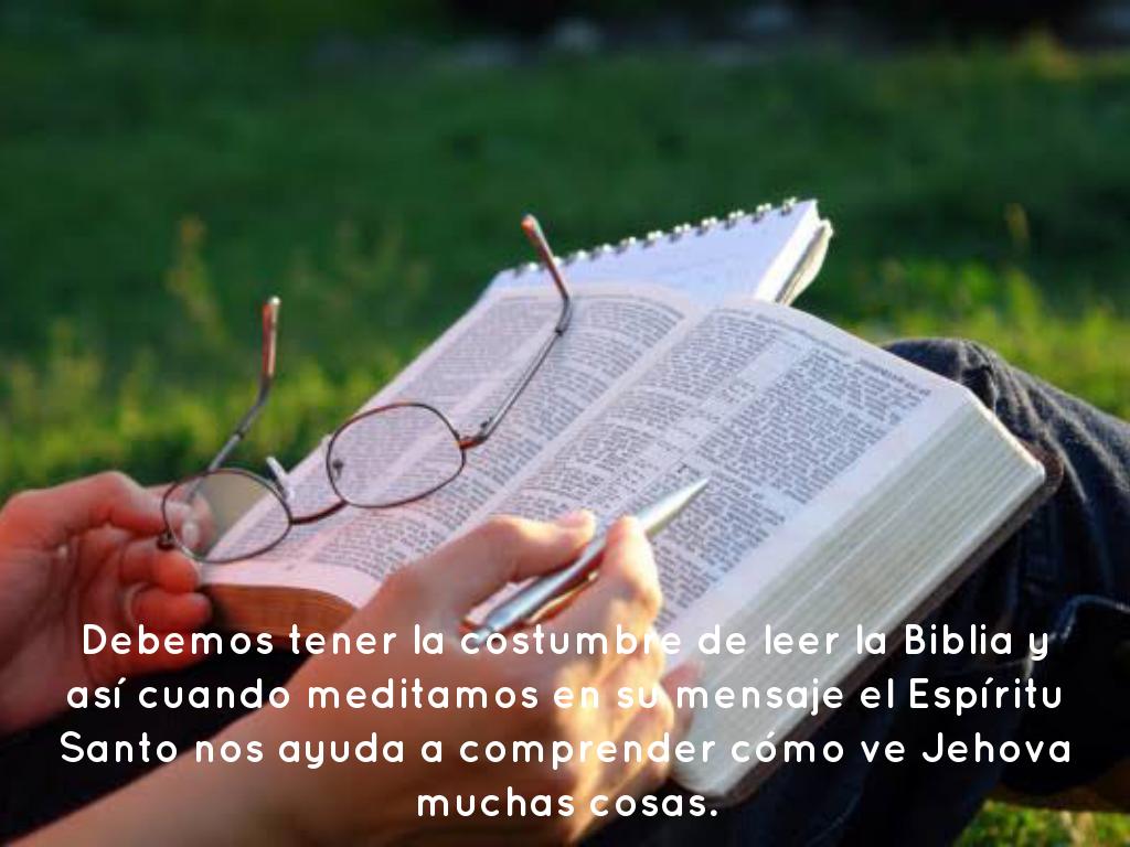 Debemos tener la costumbre de leer la Biblia y así cuando meditamos en su mensaje el Espíritu Santo nos ayuda a comprender cómo ve Jehova muchas cosas.