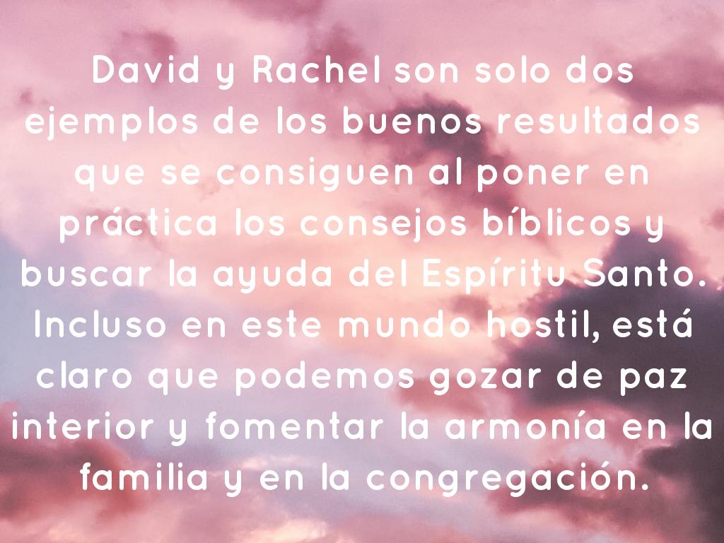 David y Rachel son solo dos ejemplos de los buenos resultados que se consiguen al poner en práctica los consejos bíblicos y buscar la ayuda del Espíritu Santo.
