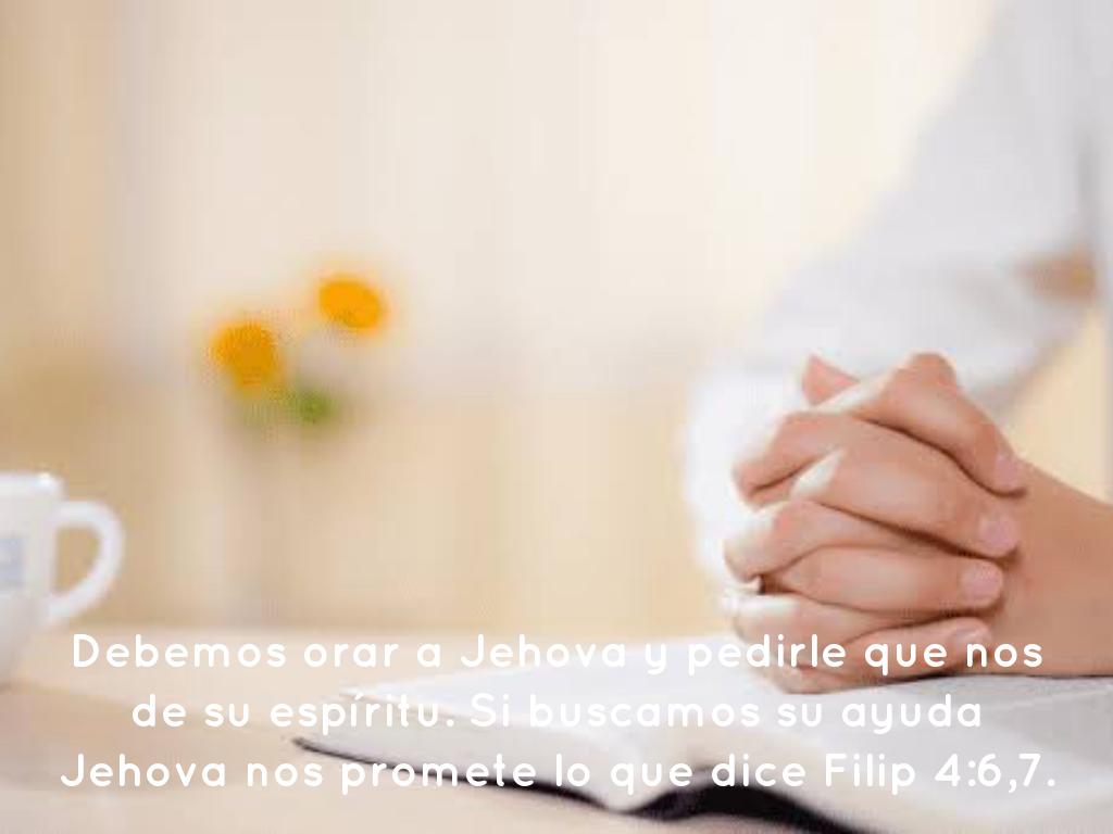 Debemos orar a Jehova y pedirle que nos de su espíritu. Si buscamos su ayuda Jehova nos promete lo que dice Filip 4:6,7.