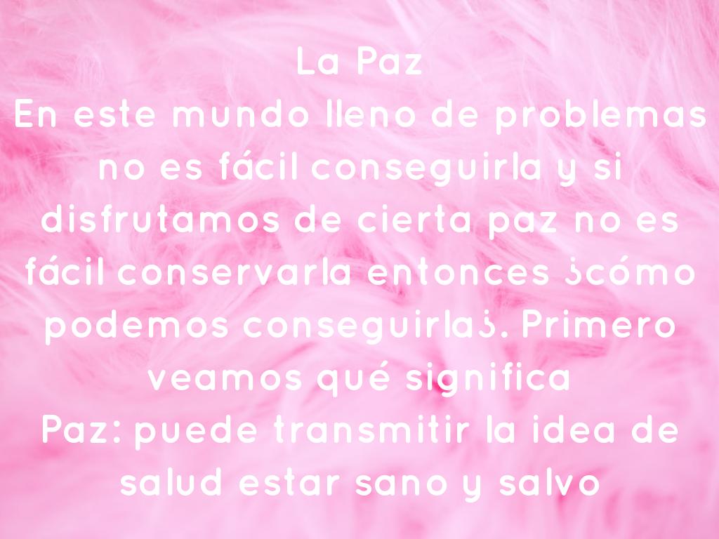 En este mundo lleno de problemas no es fácil conseguirla y si disfrutamos de cierta paz no es fácil conservarla entonces ¿cómo podemos conseguirla¿. Primero veamos qué significa