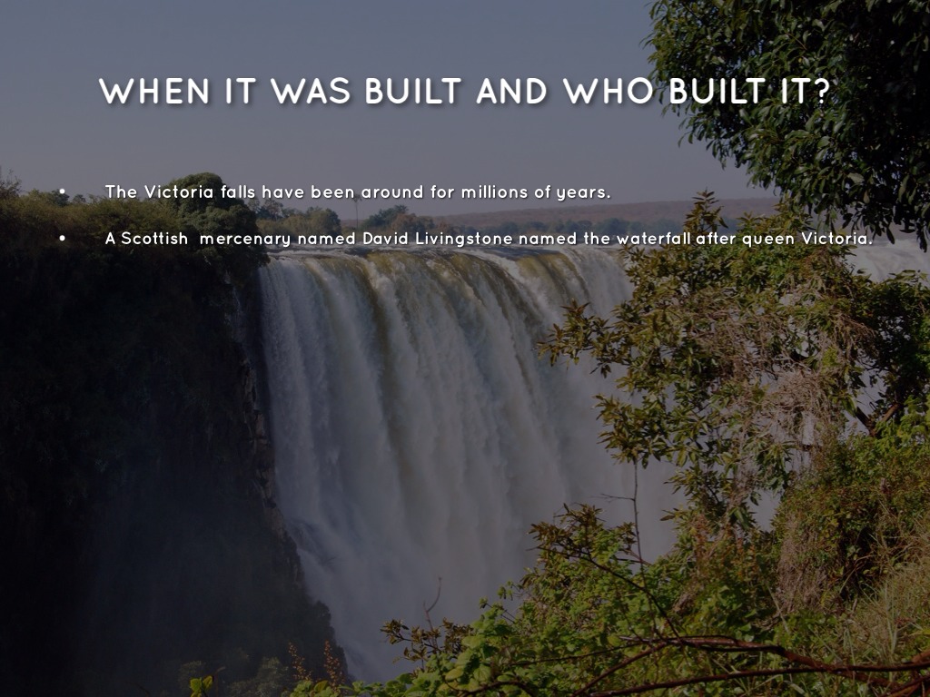 A Scottish mercenary named David Livingstone named the waterfall after queen Victoria.
