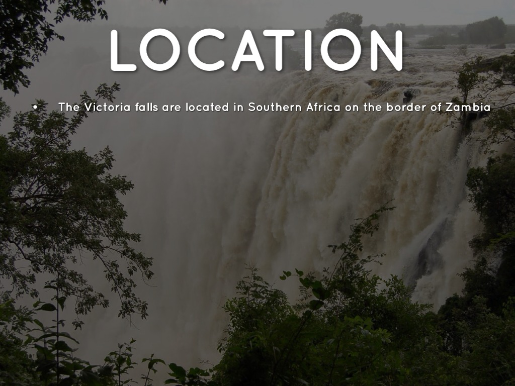The Victoria falls are located in Southern Africa on the border of Zambia