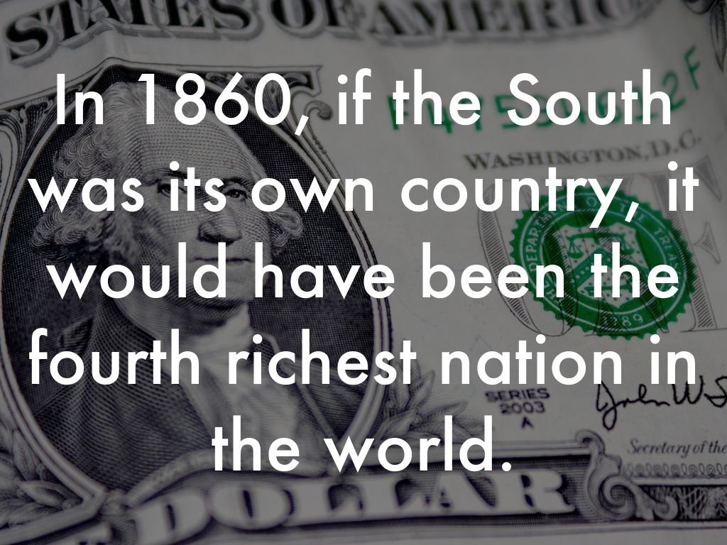 In 1860, if the South was its own country, it would have been the fourth richest nation in the world.