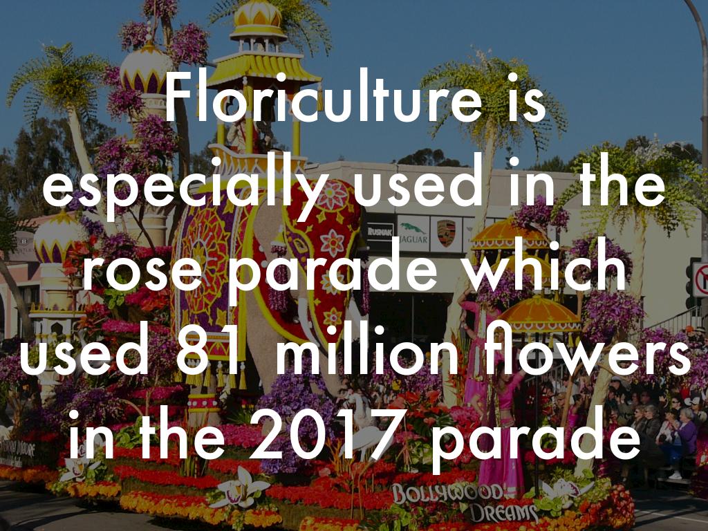 Floriculture is especially used in the rose parade which used 81 million flowers in the 2017 parade