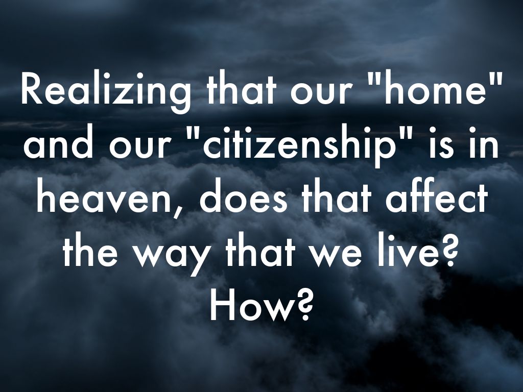 Realizing that our "home" and our "citizenship" is in heaven, does that affect the way that we live?
