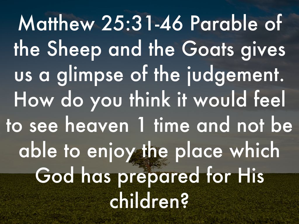 Matthew 25:31-46 Parable of the Sheep and the Goats gives us a glimpse of the judgement. How do you think it would feel to see heaven 1 time and not be able to enjoy the place which God has prepared for His children?