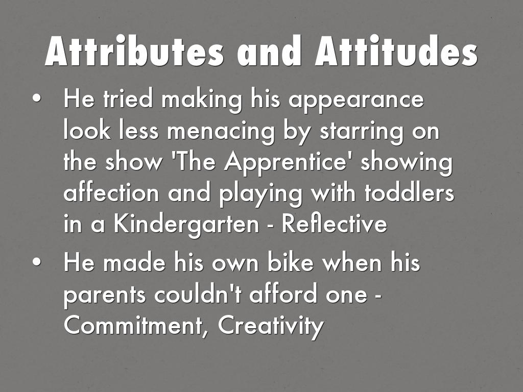 He tried making his appearance look less menacing by starring on the show 'The Apprentice' showing affection and playing with toddlers in a Kindergarten - Reflective