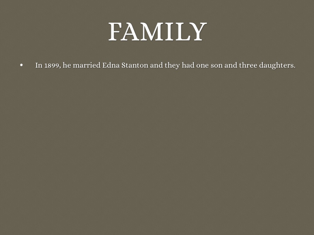 In 1899, he married Edna Stanton and they had one son and three daughters.