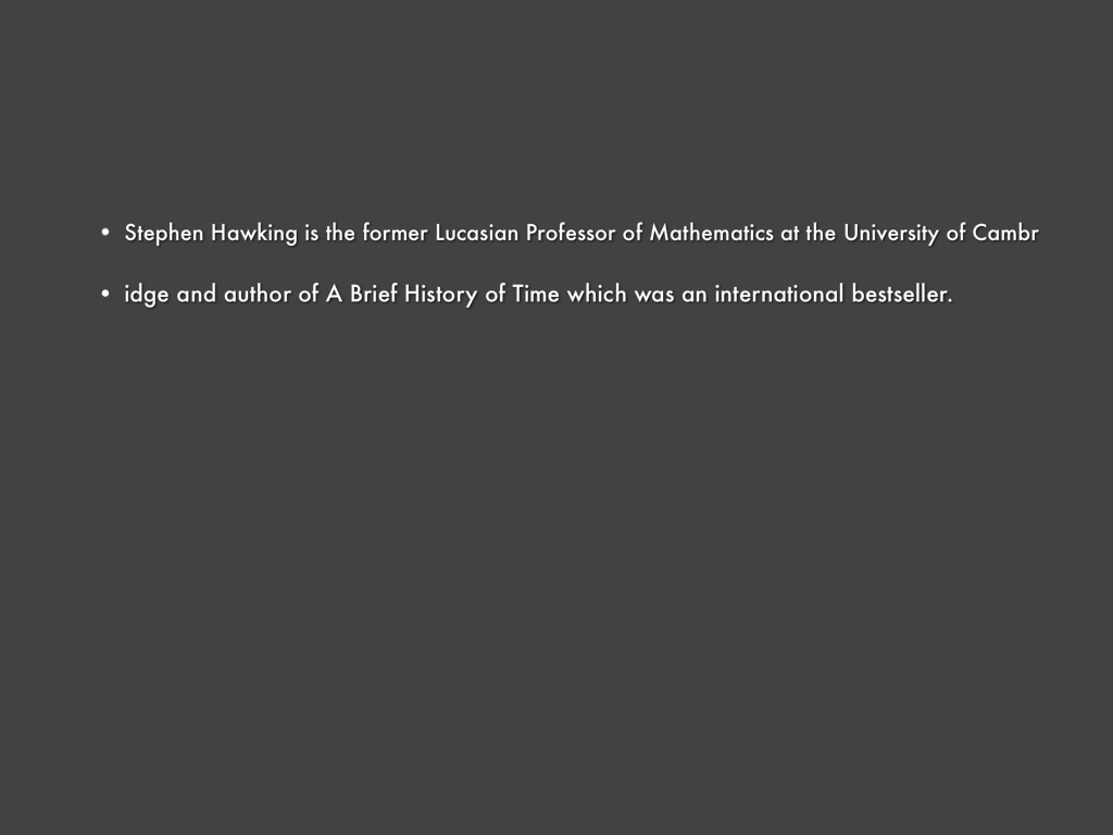 - idge and author of A Brief History of Time which was an international bestseller.