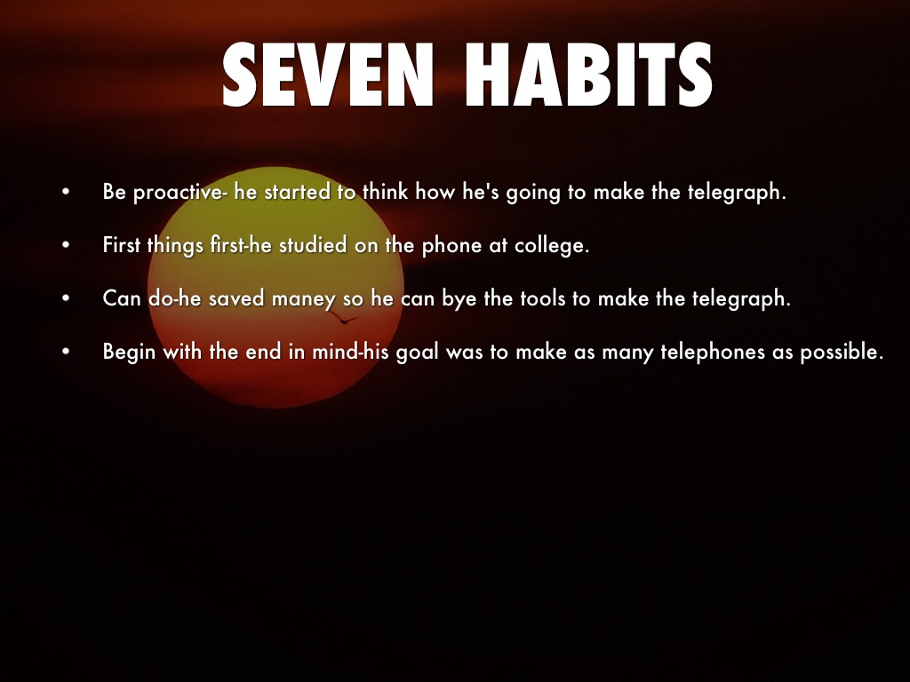 Begin with the end in mind-his goal was to make as many telephones as possible.