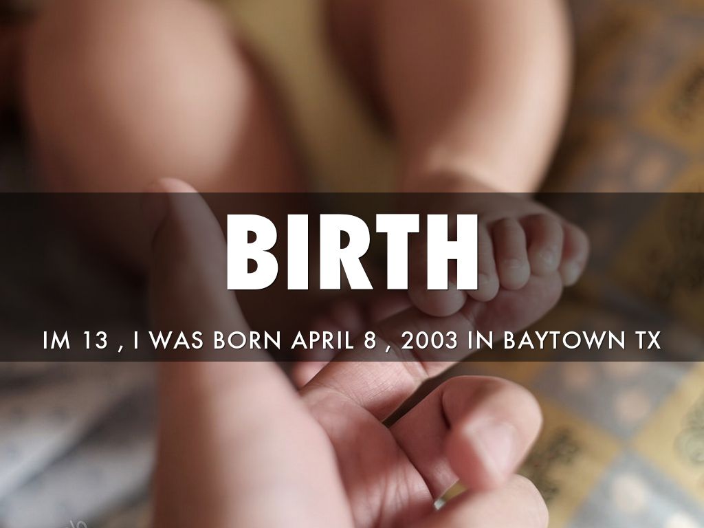 IM 13 , I WAS BORN APRIL 8 , 2003 IN BAYTOWN TX