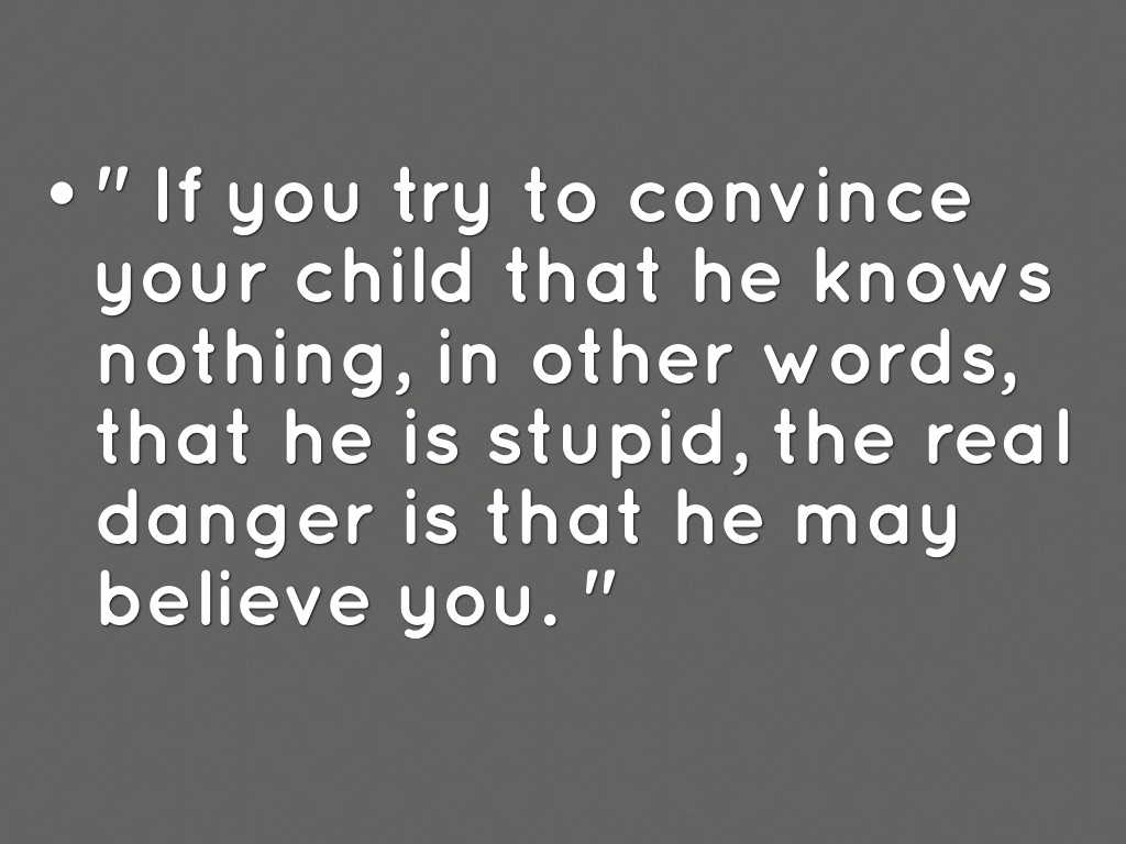 " If you try to convince your child that he knows nothing, in other words, that he is stupid, the real danger is that he may believe you. "