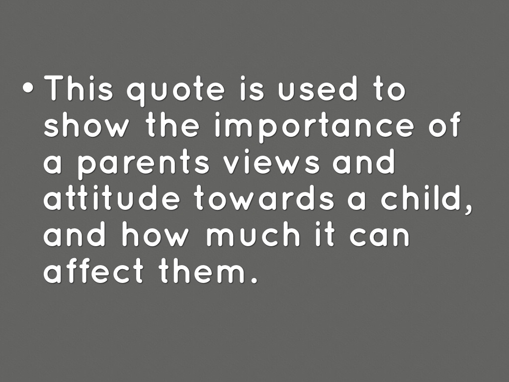 This quote is used to show the importance of a parents views and attitude towards a child, and how much it can affect them.