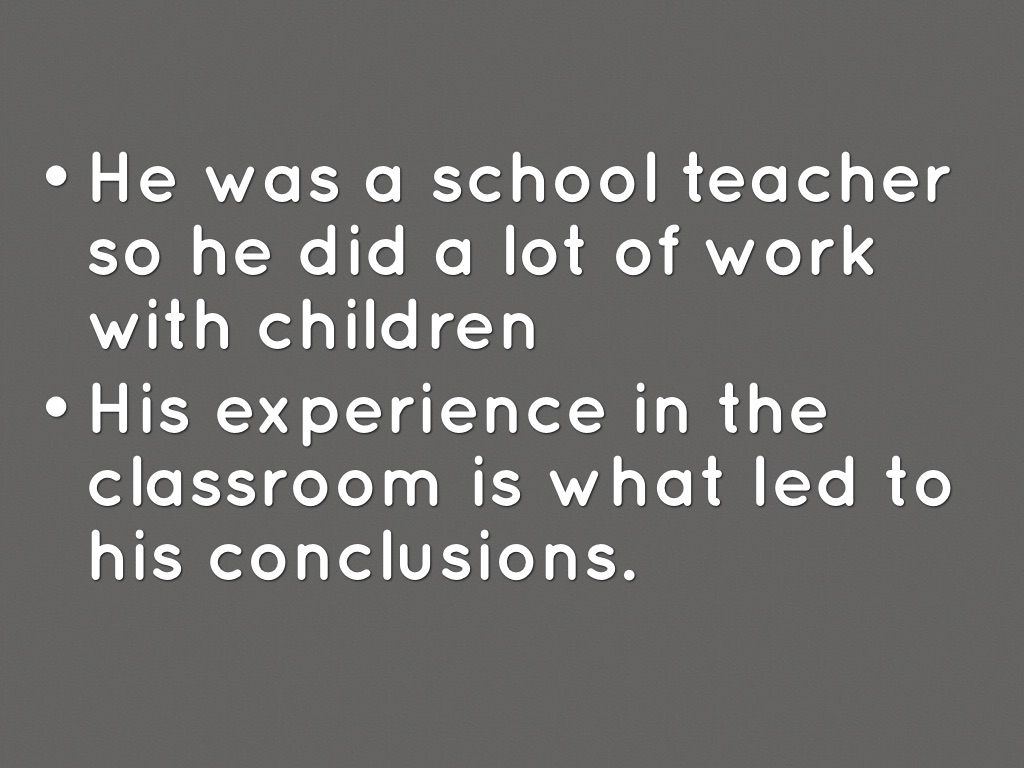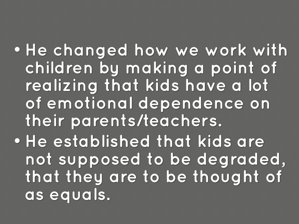 He changed how we work with children by making a point of realizing that kids have a lot of emotional dependence on their parents/teachers.