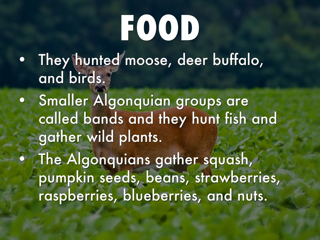 Smaller Algonquian groups are called bands and they hunt fish and gather wild plants.