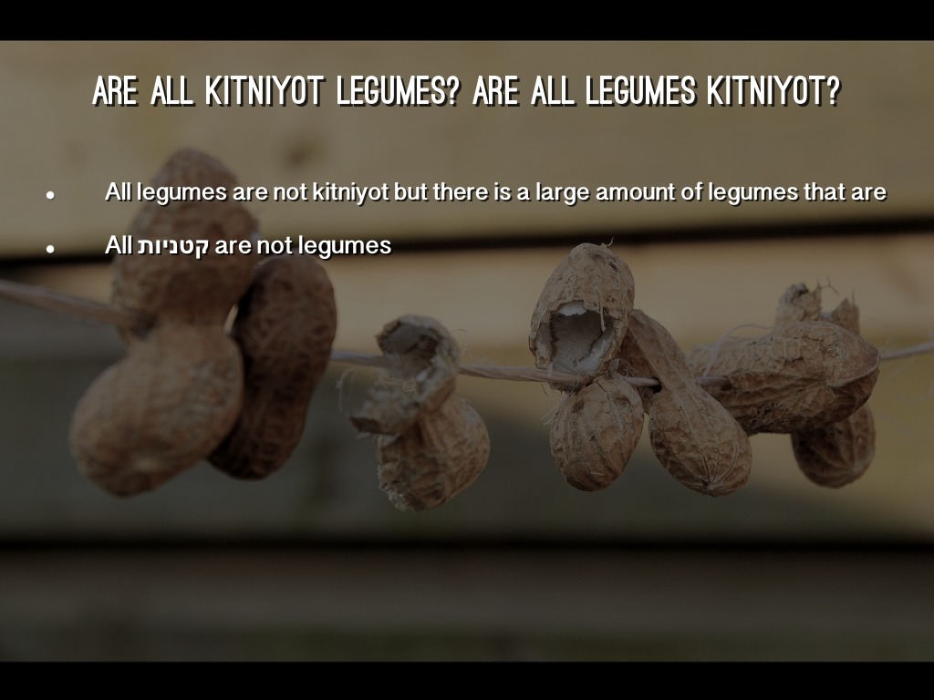 ARE ALL KITNIYOT LEGUMES? ARE ALL LEGUMES KITNIYOT?